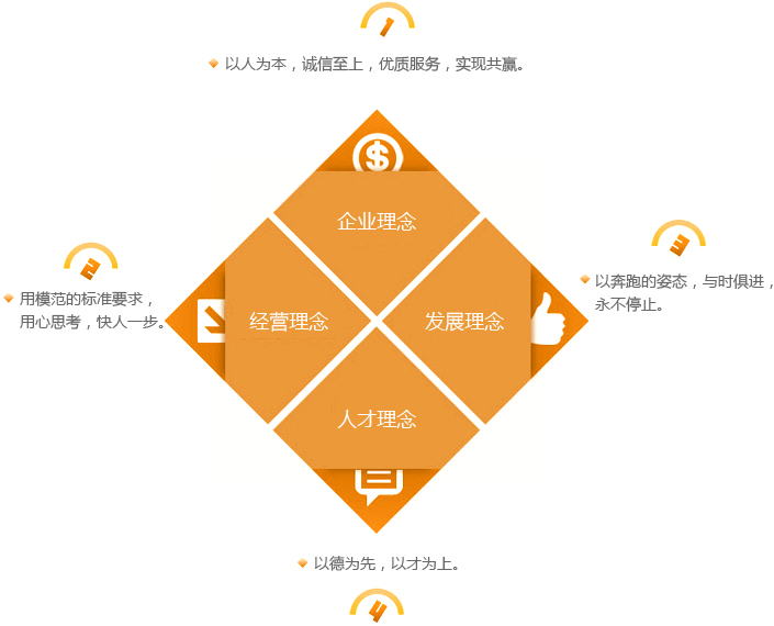 回報社會、構(gòu)筑和諧。服務(wù)人民大眾,振興民族經(jīng)濟(jì);質(zhì)量是企業(yè)的生命;顧客是完美的衣食父母;遵守國家法律,弘揚(yáng)法制精神,伸張社會正義,爭做守法公民;爭創(chuàng)效益,回報社會;以人為本,以才興企,廣納賢才。